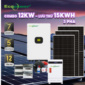 Hệ thống điện mặt trời hòa lưới 3 pha 12KW có lưu trữ 15KWH tự lắp